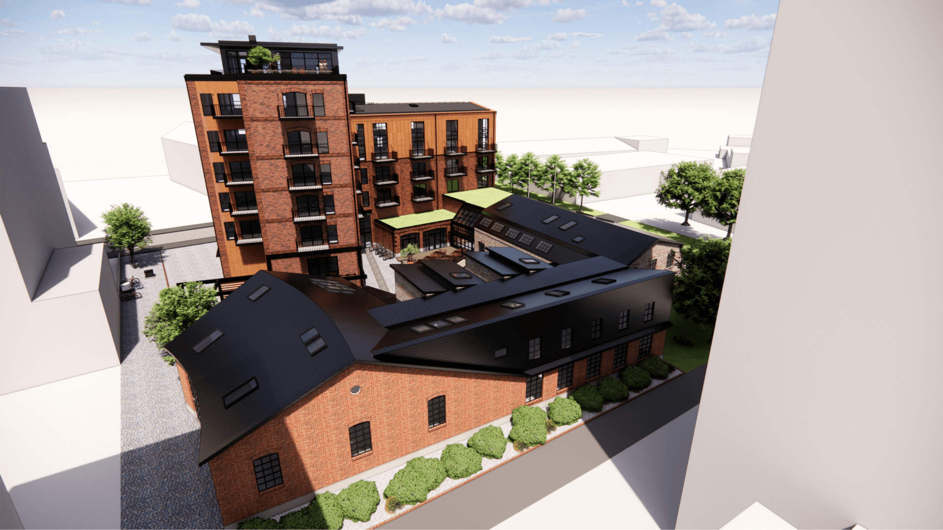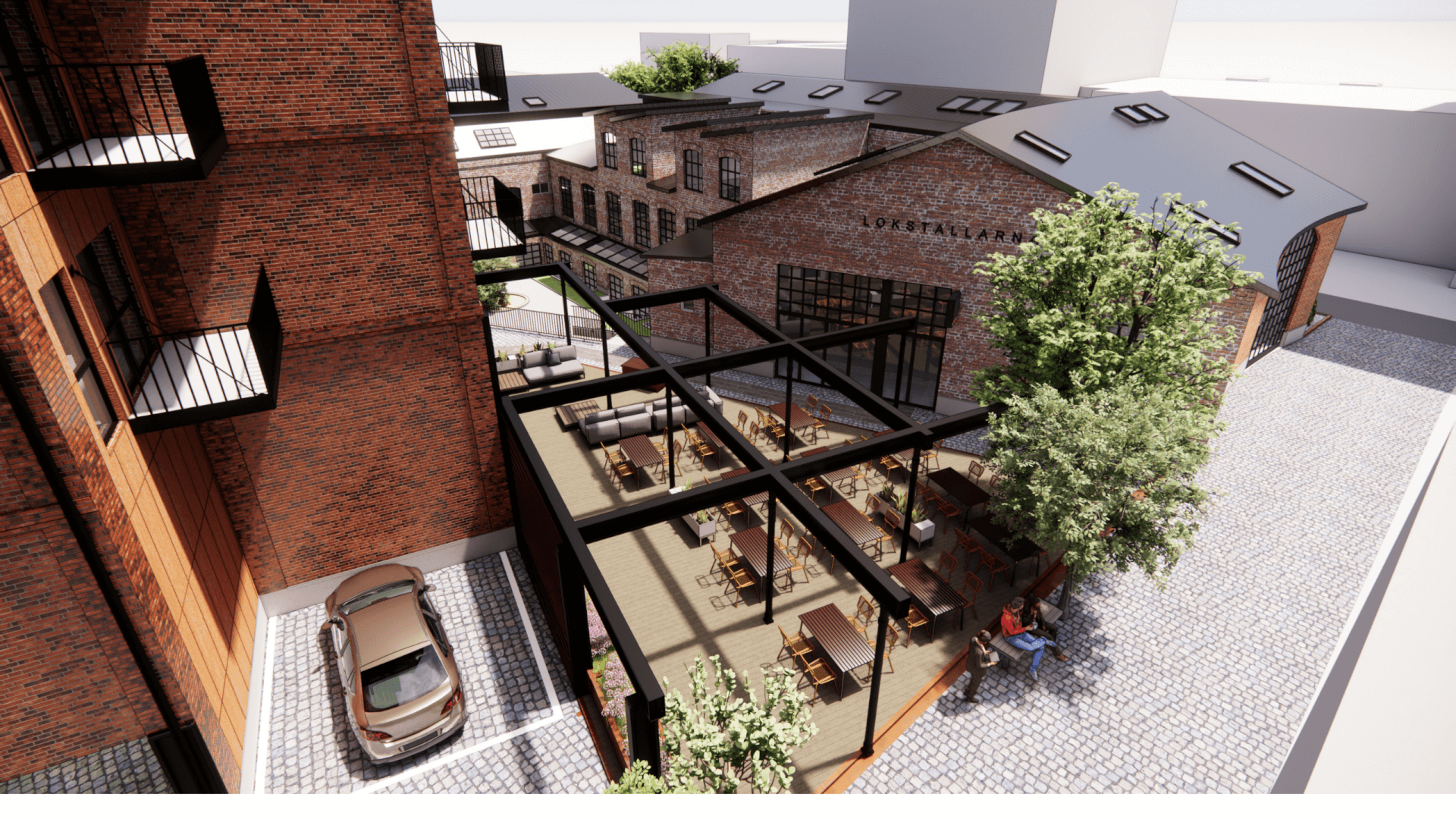 Den befintliga byggnaden, med ursprung som lokstallar, sätter en tydlig identitet för projektet. I utbyggnaden vidareutvecklas den industriella karaktären genom material och gestaltning med tegel, synliga ståldetaljer och bärande konstruktioner som knyter an till platsens historia och stärker helheten mellan gammalt och nytt.